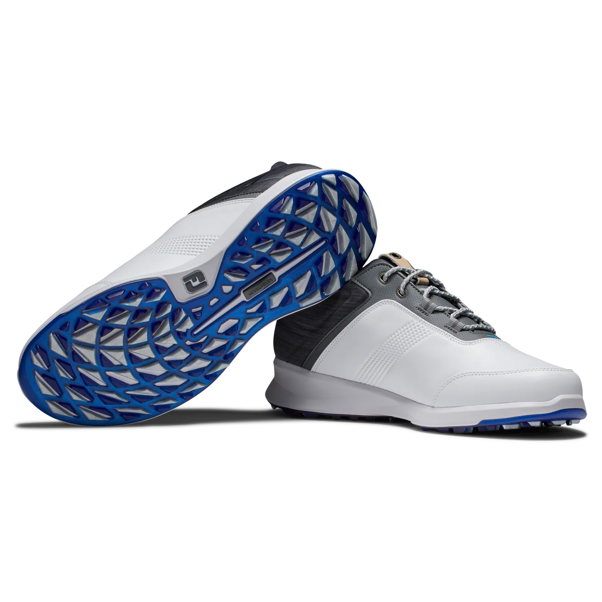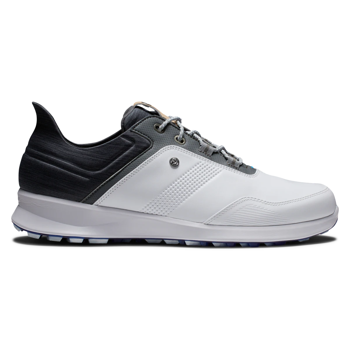 Introducing the FootJoy Men’s Stratos XW Spikeless Golf Shoes in White/Charcoal – the perfect blend of style and comfort for golf enthusiasts. Experience out-of-this-world comfort with FJ Stratos featuring STRATOFOAM, a proprietary cushioning system designed from a unique compound blend that absorbs shock and returns energy to help reduce foot fatigue after a round of golf.